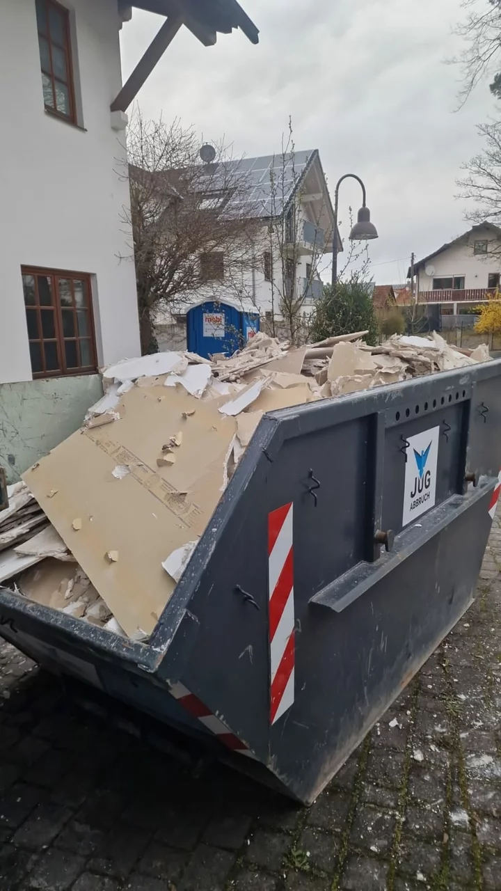 Wir entsorgen sämtliche Baustellenmaterialien – von Bauschutt und Holz über Beton, Gips und Dachpappe bis hin zu gefährlichen Stoffen wie Asbest oder KMF.